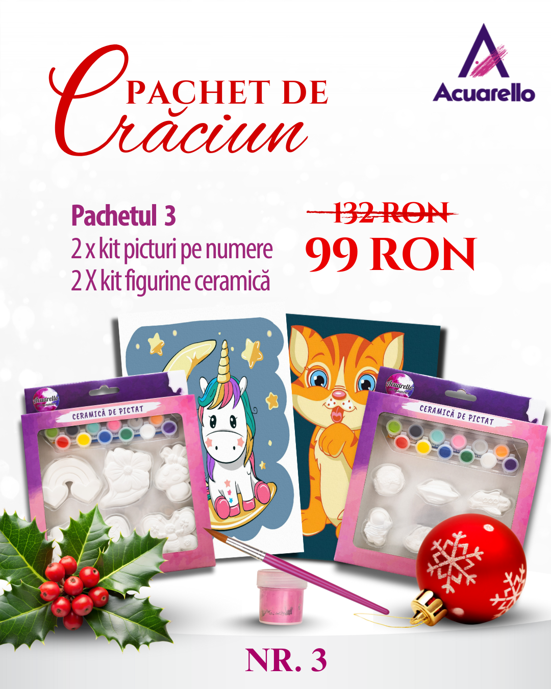 Pictând, ne putem dezvolta capacitatea de concentrare, îndemânare și de a ne exprima emoțiile printr-o modalitate nouă de relaxare. Setul poate fi un cadou ideal atât pentru adulți cât și pentru copii, fiind o activitate inedită de dezvoltare a laturei artistice.